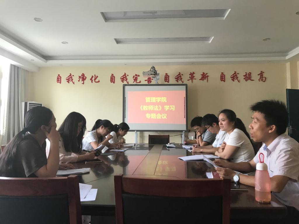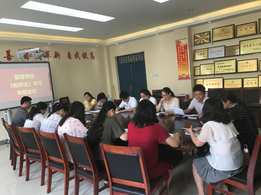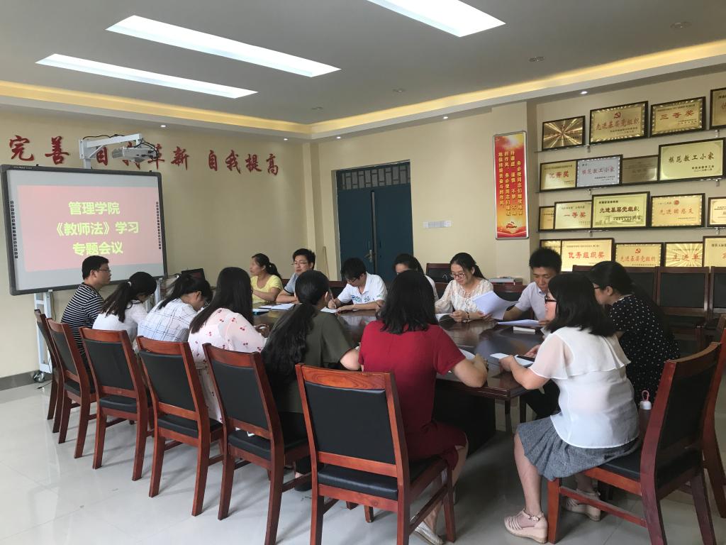 (通讯员:兰娜)为增强广大教师依法执教意识,6月24日下午,河南城建学院管理学院教师在四楼会议室学习《教师法》。