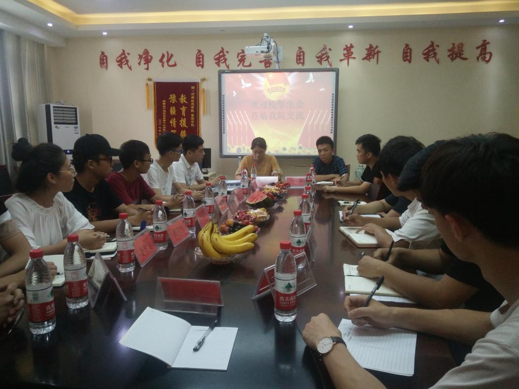 (通讯员:李帅康)为加强我院学生会干部队伍建设,提高学生会的凝聚力和战斗力,5月18号下午,我院特邀校学生会主席团赴我院开展学生工作交流活动。我院副书记马斌、学工办老师李玲慧,校学生会主席团及我院学生会主席团参加了本次交流活动。