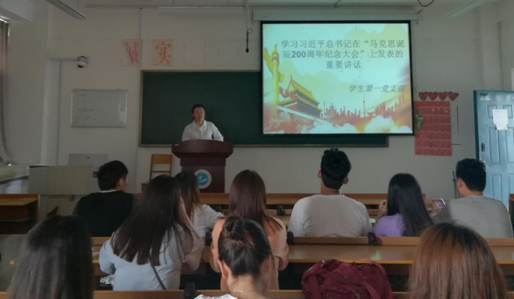 随后全体党员同志共同观看了习近平总书记在纪念马克思诞辰200周年大会上的重要讲话的视频。同时为纪念五四青年节,传承五四精神,支部开展了以“传承五四薪火,展现青春风采”为主题的诗歌朗诵比赛,支部学生党员积极参加活动,参赛选手精心准备,充分展现了青年奋发向上的精神状态。
