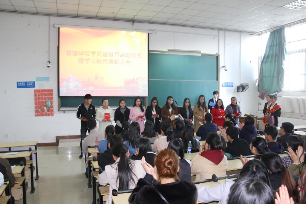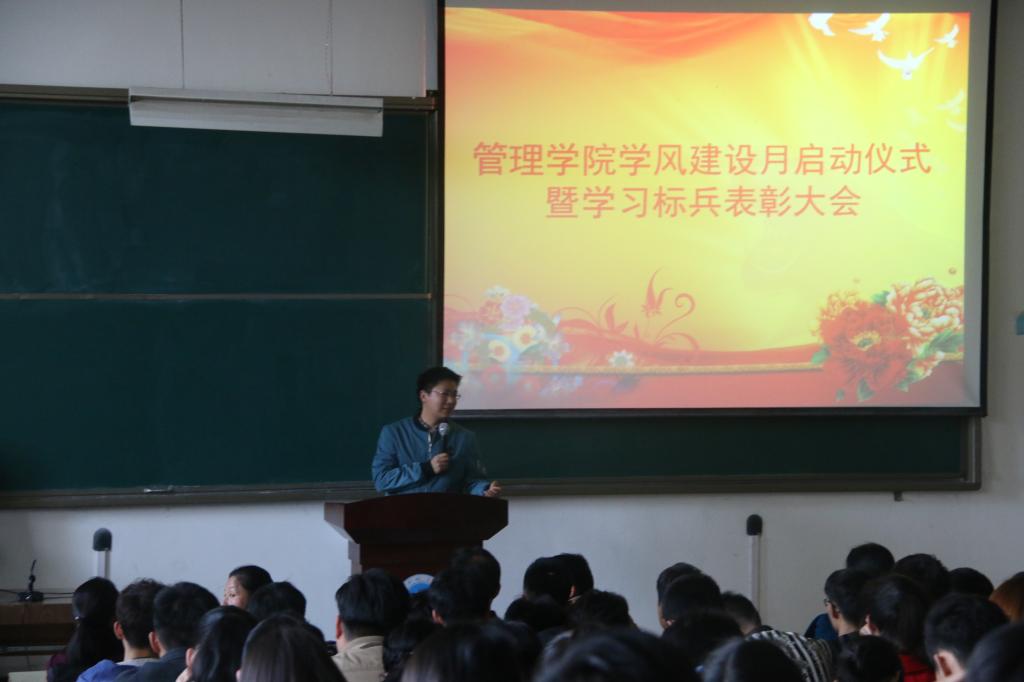 (通讯员:李玲慧)为进一步加强学风建设,激发同学们学习的积极性和主动性, 3月14日下午,管理学院学风建设月系列活动之——学风建设月启动仪式暨学习标兵表彰大会在八号楼B109、B110如期举行,出席本次大会的嘉宾有管理学院副院长祖立厂、副书记马斌、房地产教研室、营销教研室的各位老师。