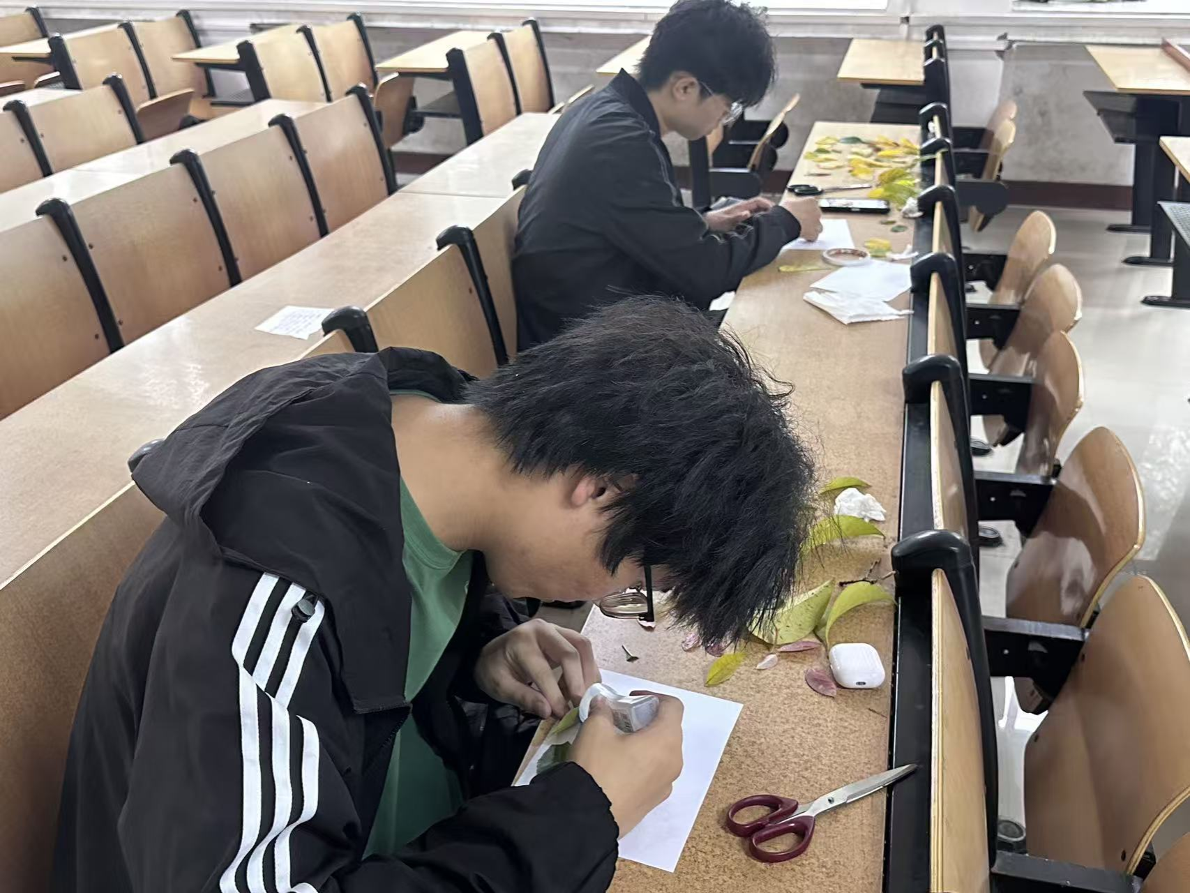 待材料收集完毕,学生们返回教室开启创意创作环节。大家充分发挥想象力与动手能力,将落叶、野果等不起眼的自然素材,转化为兼具美感与巧思的手工作品,以独特方式诠释对秋日的理解与热爱。活动现场氛围轻松愉悦,不同专业、不同年级的学生相互交流创作思路,分享拾秋过程中的趣事,在协作与互动中拉近彼此距离。