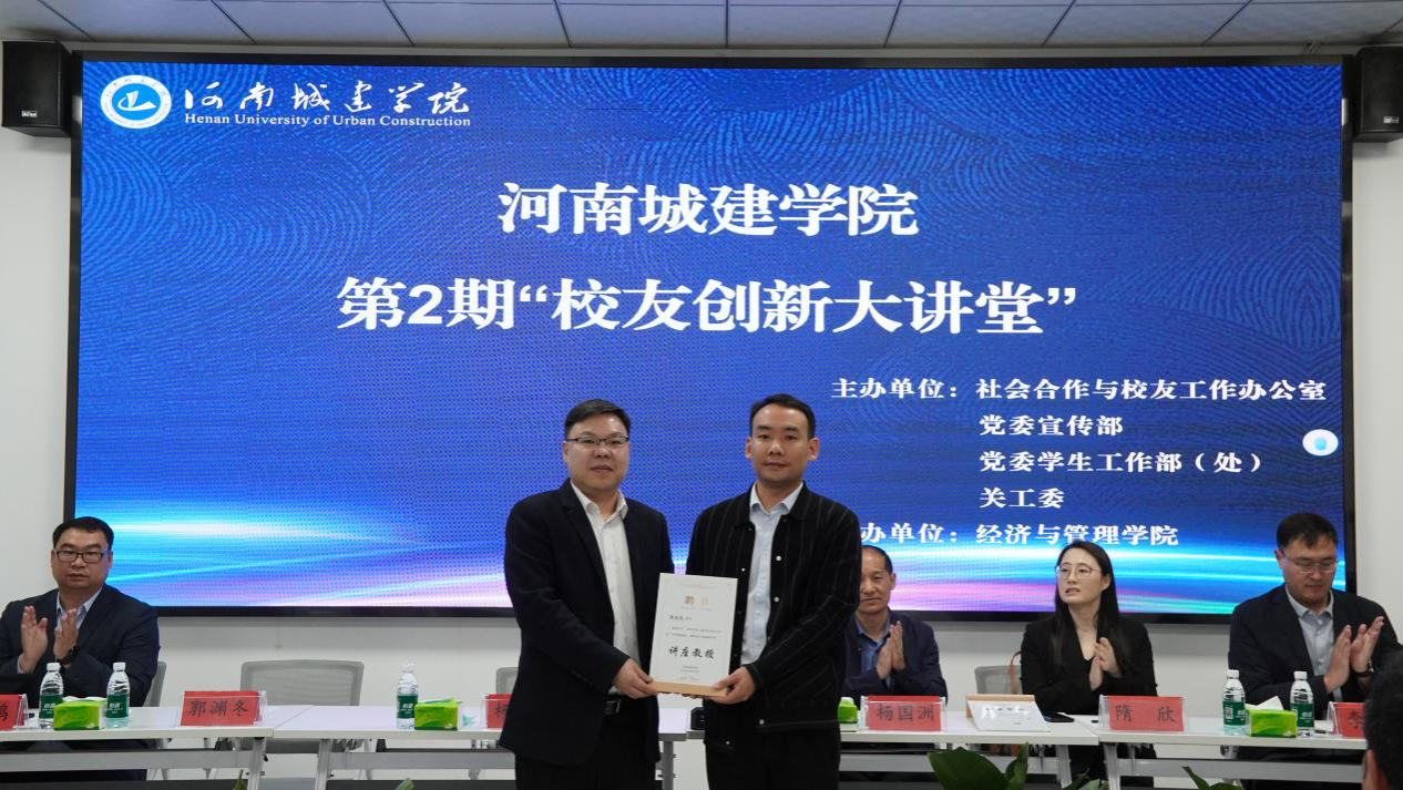 (通讯员 朱渴望)为深化产教融合、拓宽师生学术视野,助力学生精准把握数字化发展新趋势,4月2日,由社会合作与校友工作办公室、党委宣传部、党委学生工作部(处)、关工委主办,经济与管理学院承办的2026年第二期校友创新大讲堂在8号教学楼A208举行。社会合作与校友工作办公室副主任杨毅、学生处副处长杨国洲、经济与管理学院副院长殷许鹏及学生代表100余人参加此次活动。本次大讲堂活动特邀请我院优秀校友、云河(河南)信息科技有限公司郭渊冬做报告。活动由经济与管理学院党委副书记李思源主持。
