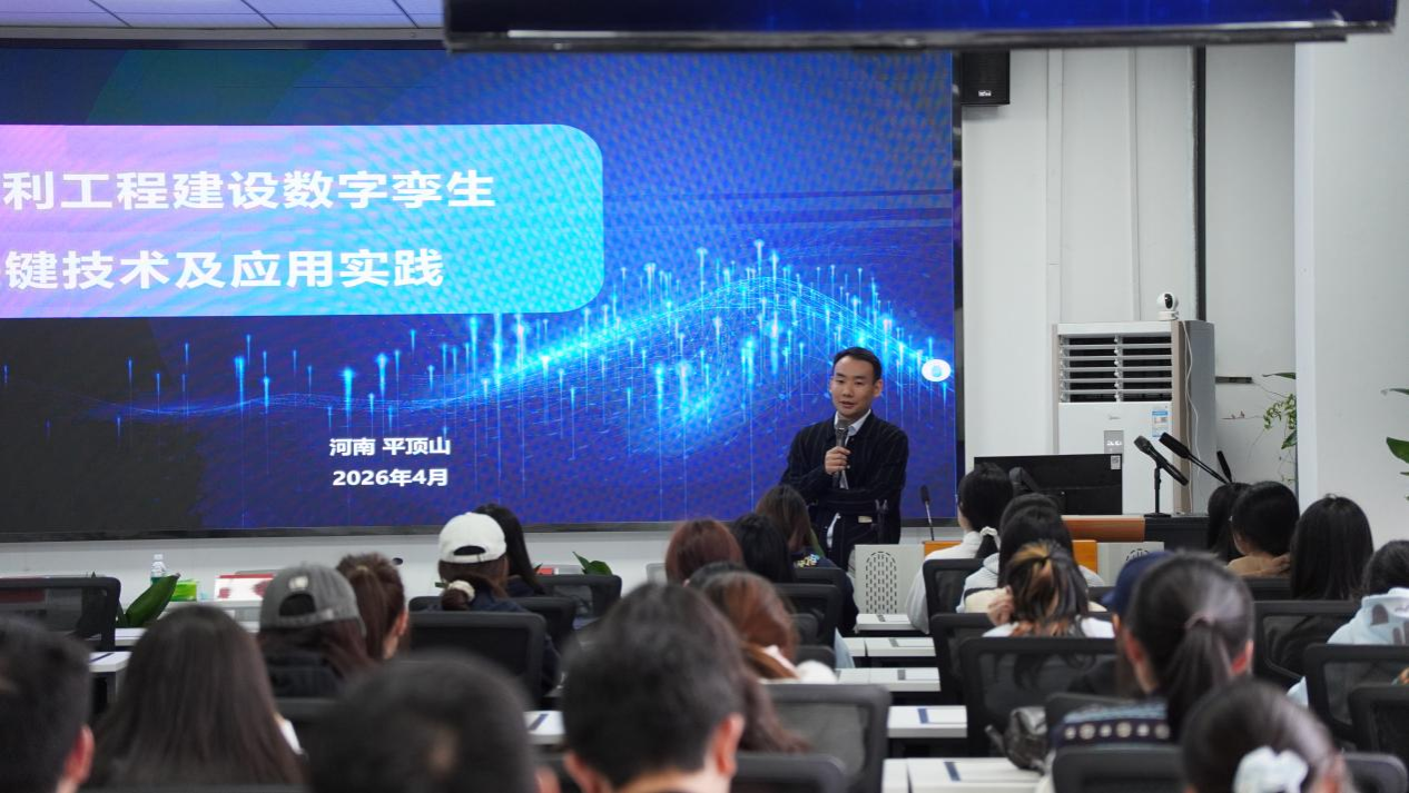 报告中,郭渊冬结合自身一线实践经历,围绕行业政策、关键技术、典型案例、个人成长四个维度展开分享。他系统解读水利工程数字化转型政策导向,深入讲解数字孪生、BIM、智能监测等核心技术在水利工程全生命周期的应用要点,结合南水北调等国家级重大工程案例,生动展现数字化技术破解工程建设难题、提升建设管理效能的实践路径,并分享个人职业成长历程,为在场学子规划学业、提升能力、对接行业需求提供务实指导,助力大家拓宽专业视野、紧跟行业前沿、增强创新与实践能力。