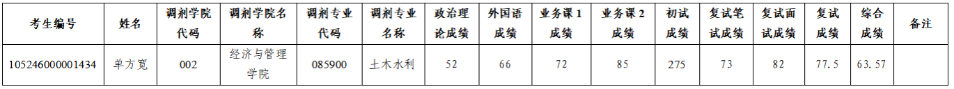 按照我校2026年研究生招生工作安排,我院于4月14日进行了调剂复试,现对调剂考生复试综合成绩进行公示: